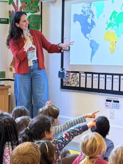 "First graders explored World Quaker Day with Lower School teacher Calliope, a practicing Quaker. She introduced Meeting for Worship as a global practice and shared an illustrated book about Meeting that includes text in te reo Māori, the Indigenous language of Aotearoa New Zealand—a bridge between World Quaker Day and the week’s observance of Indigenous Peoples’ Day. Students then considered Quakerism around the world, noticing how each Meetinghouse reflects its community while holding the same center. They reflected on this year’s World Quaker Day theme, Love Thy Neighbor, and completed a brief reflection inviting them to notice what silence feels like and how it helps them listen for the Inner Light."